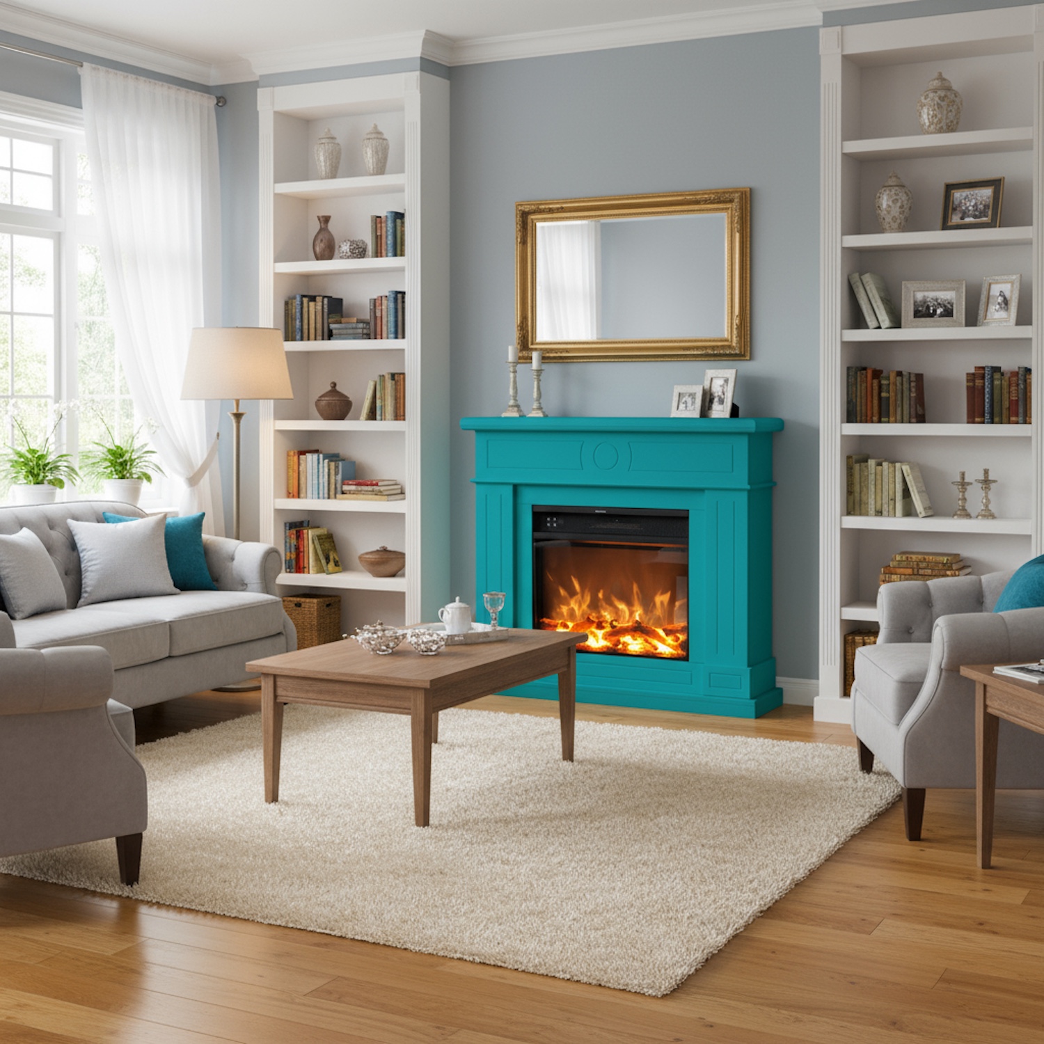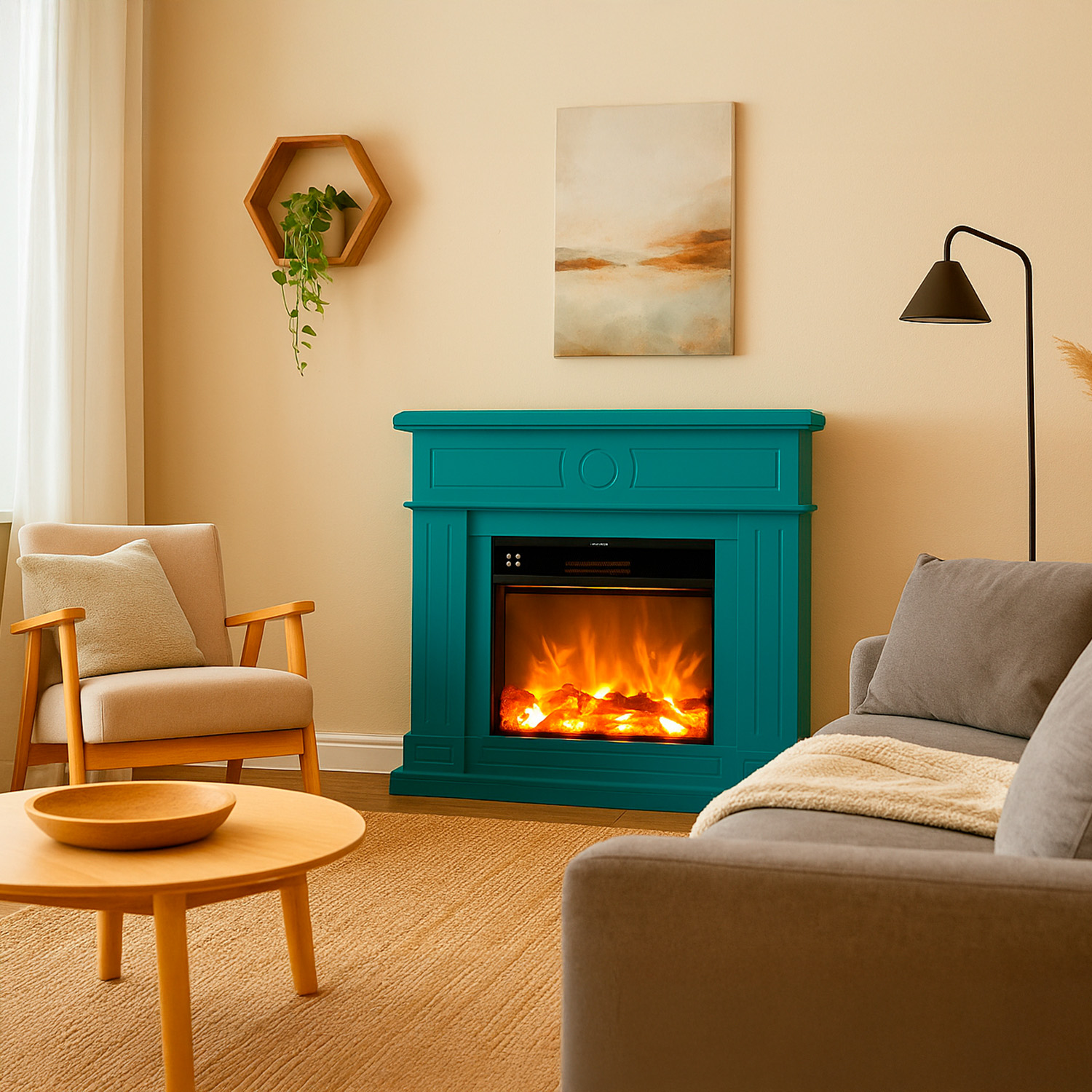 Il caminetto elettrico modello FUEGO ROBERTA TURQUESA si distingue per il suo inedito colore blu turchese. La sua estetica moderna e raffinata gli consente di inserirsi con eleganza in ogni ambiente, sia esso una stanza di casa, un ufficio o un locale di rappresentanza.