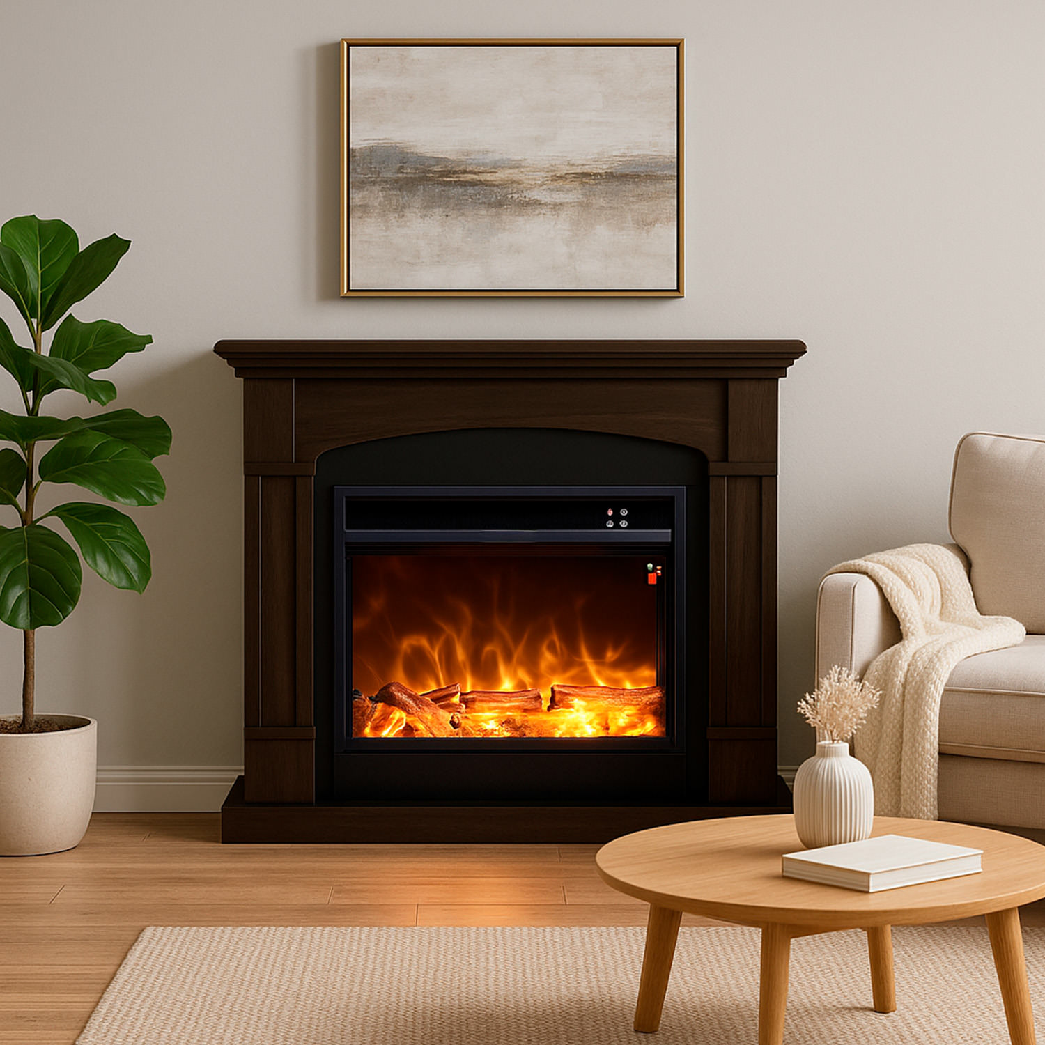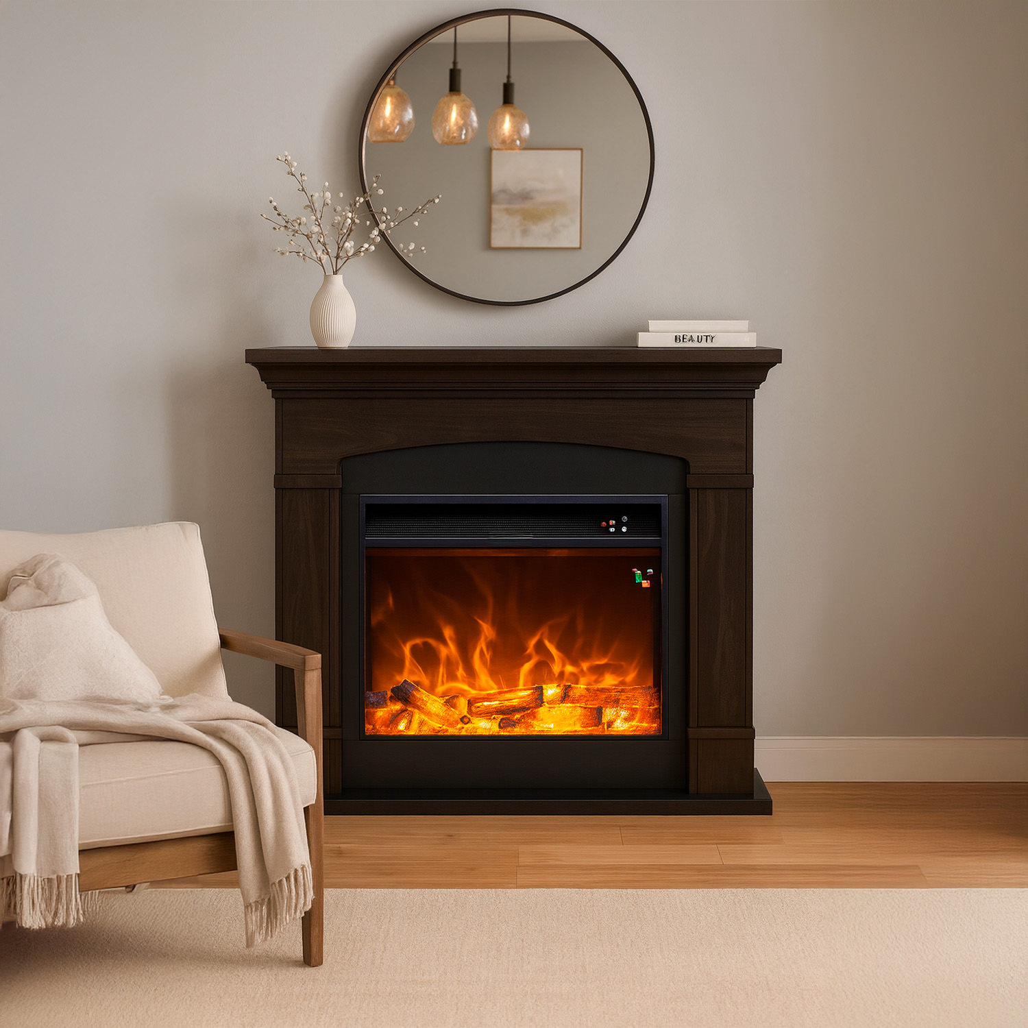 La luce integrata a Led è molto realistica. La profondità di soli 25 cm lo rende poco ingombrante, perfetto per qualsiasi ambiente. Tutto gestibile con un telecomando, la fiamma può essere attivata indipendentemente dalla modalità riscaldamento. Oltre che con il telecomando potrai scegliere le varie opzioni anche dal pannello frontale.
