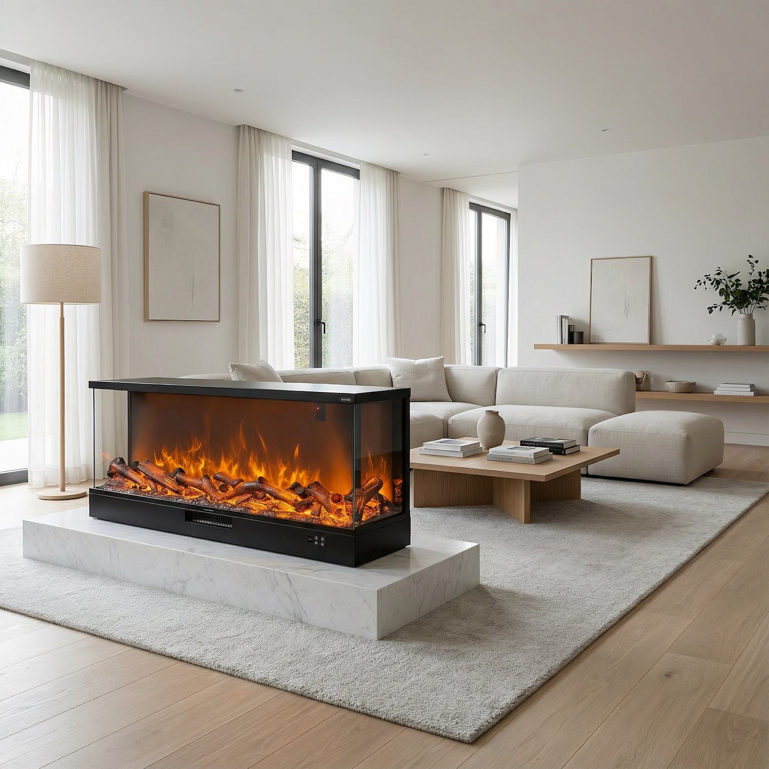 Che tu viva in una moderna città o in una tranquilla casa di campagna, il caminetto elettrico moderno a tre facciate si adatta perfettamente a ogni ambiente: dalla casa all’ufficio, dall’hotel al B e B. È la soluzione ideale per chi cerca non solo un caminetto, ma un vero e proprio elemento d’arredo capace di creare un’atmosfera speciale.