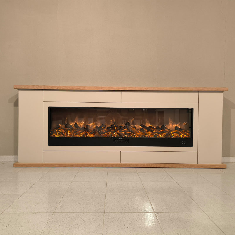 Oltre a essere un mobile con camino, il DESIO-180 è anche un vero e proprio elemento di design. Le sue linee pulite, il colore neutro e l`effetto fiamma lo rendono un complemento d’arredo perfetto per chi desidera trasformare il proprio spazio in un ambiente elegante e accogliente. Che tu lo utilizzi come mobile porta camino o come consolle con camino elettrico, il DESIO-180 diventa il centro dell’attenzione, regalando calore e bellezza a qualsiasi stanza.